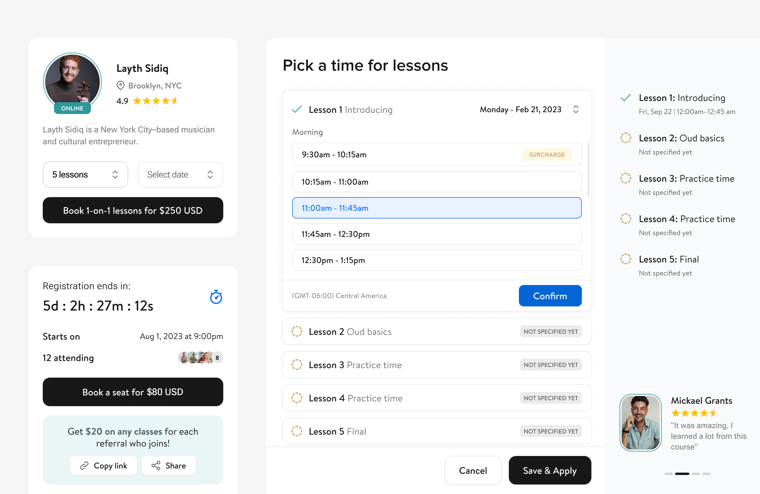 The goal was to design a booking experience that feels transparent, guided, and intuitive. By restructuring the course details page and simplifying the booking flow, the experience was designed to reduce friction, clarify expectations, and support informed decisions for both tutors and learners.